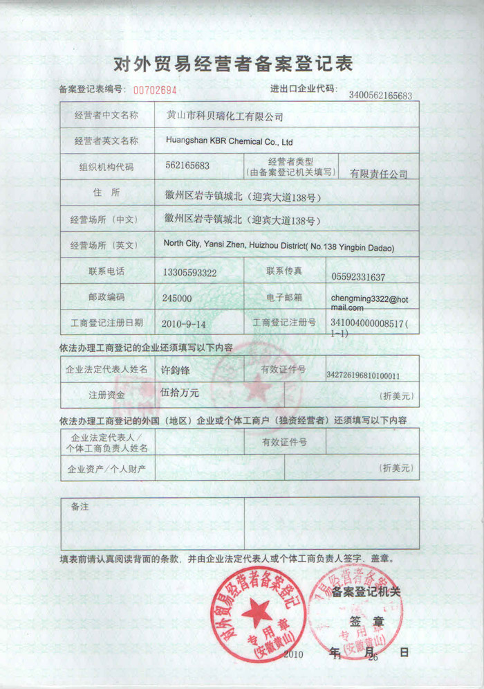 黃山市科貝瑞化工有限公司 在線客服 ENGLISH